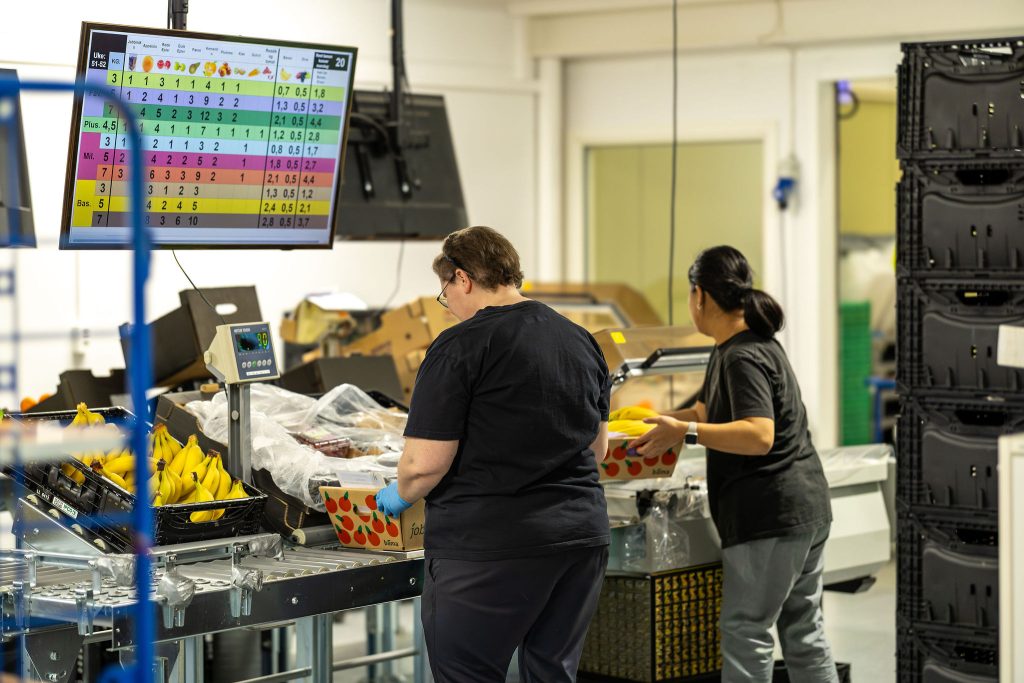 Jobbfrukt-avdelingen tilbyr varierte oppgaver, fra pakking av frukt til å sette sammen og levere 3, 5 eller 7 kg. fruktkurver til våre fantastiske kunder.